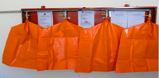 布袋式壓風自救器的結(jié)構(gòu):布袋式壓風自救裝置組成:自救布袋、雙頭內(nèi)絲連接螺帽、過濾器、連接桿、墊片及螺